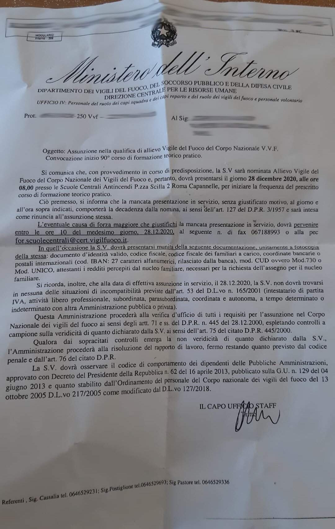 Alleghiamo la convocazione ricevuta qualche giorno fa dagli Allevi del 90° corso.