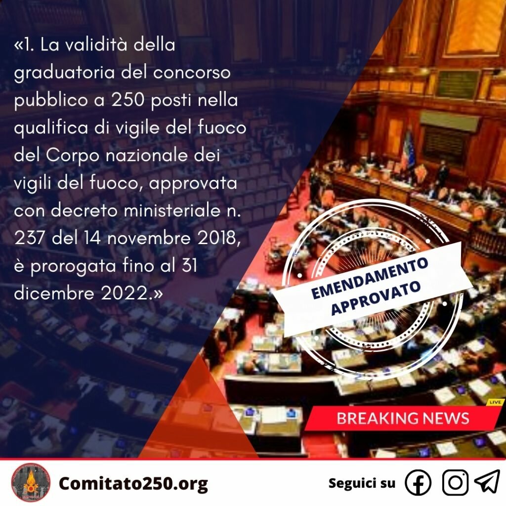 con estrema soddisfazione vi anticipiamo che siamo venuti a conoscenza informalmente, dell’approvazione da parte dell’emendamento da noi proposto, inerente la proroga di validità della graduatoria di merito del Concorso Pubblico 250 sino al 31 dicembre 2022 (clicca qui per leggere la proposta).