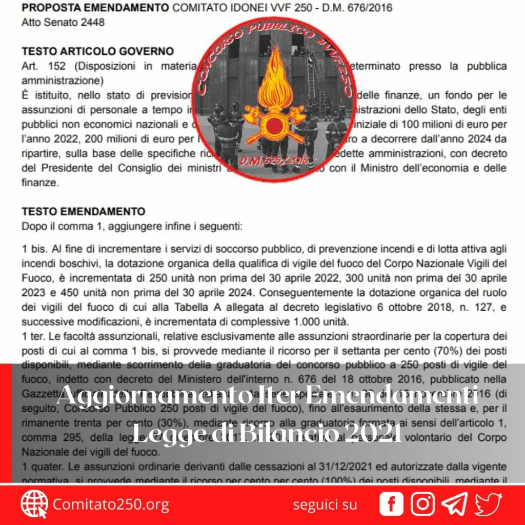 Ormai “l’ottovolante” della Legge di Bilancio, abbiamo imparato a conoscerlo molto bene in questi anni di attività del Comitato Idonei VVF 250.