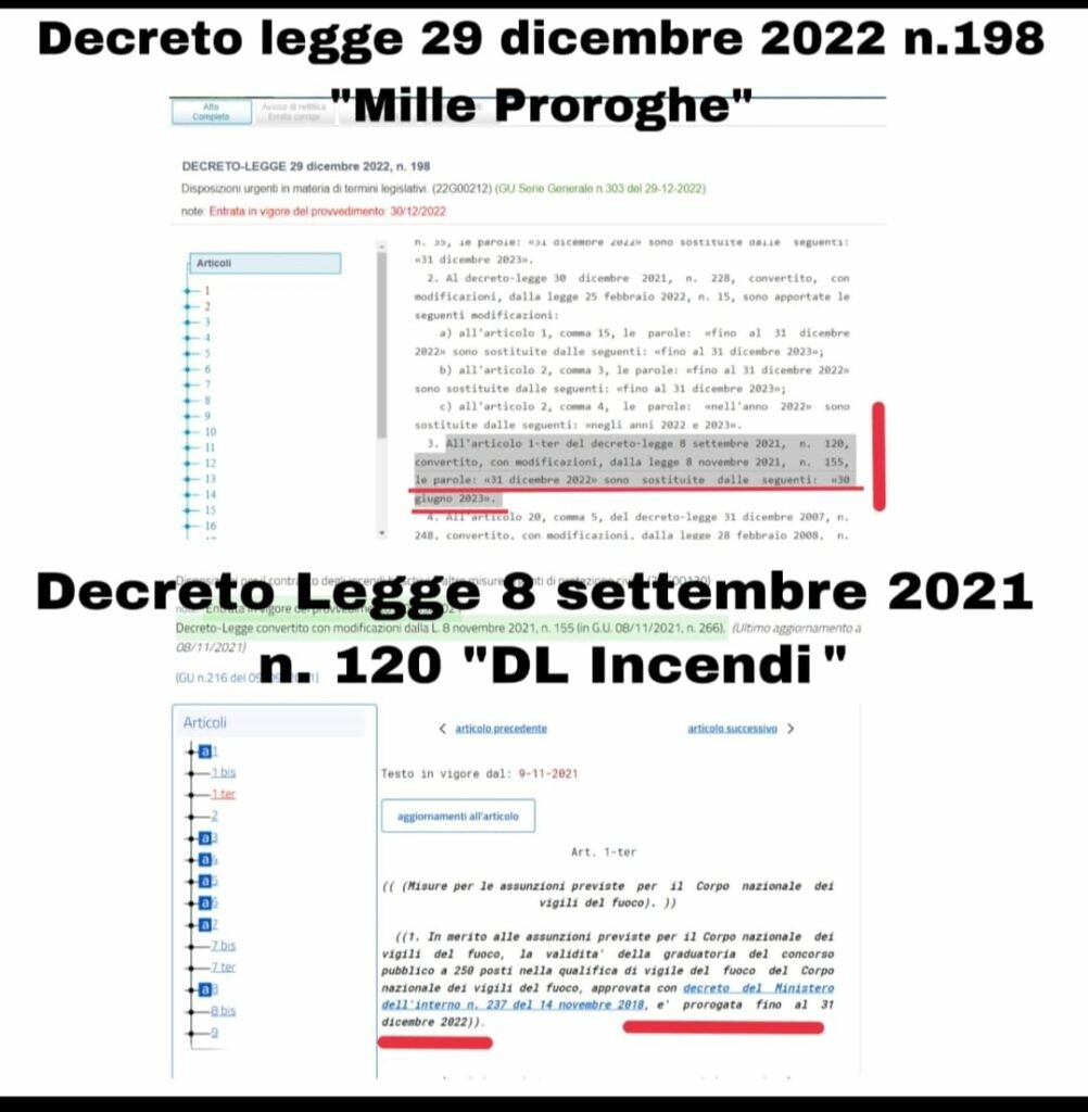 l’obiettivo finale del Comitato Idonei 250 – ovvero l’esaurimento della nostra graduatoria – oggi riceve un importante se non decisivo passo in avanti con l’approvazione del DL “Mille Proroghe” (DL 29 dicembre 2022 n. 198) che all’Articolo 2, comma 3 (in materia di proroga di termini in materie di competenza del Ministero dell’interno) recita all’Articolo 1-ter del decreto-legge 8 settembre 2021, n. 120, convertito, con modificazioni, dalla legge 8 novembre 2021, n. 155, le parole: «31 dicembre 2022» sono sostituite dalle seguenti: «30 giugno 2023».